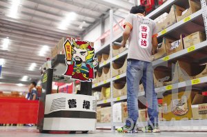 “我們這個(gè)倉儲(chǔ)搬運(yùn)智能機(jī)器人被取名為‘曹操’,俗話說‘說曹操,曹操到’,以此表達(dá)天貓超市對(duì)物流實(shí)效的要求。”菜鳥網(wǎng)絡(luò)相關(guān)負(fù)責(zé)人表示,“曹操”是部可承重50公斤,速度達(dá)2米/秒的智能機(jī)器人,接到訂單后,它可以迅速定位出商品在倉庫分布位置,并規(guī)劃優(yōu)揀貨路徑。